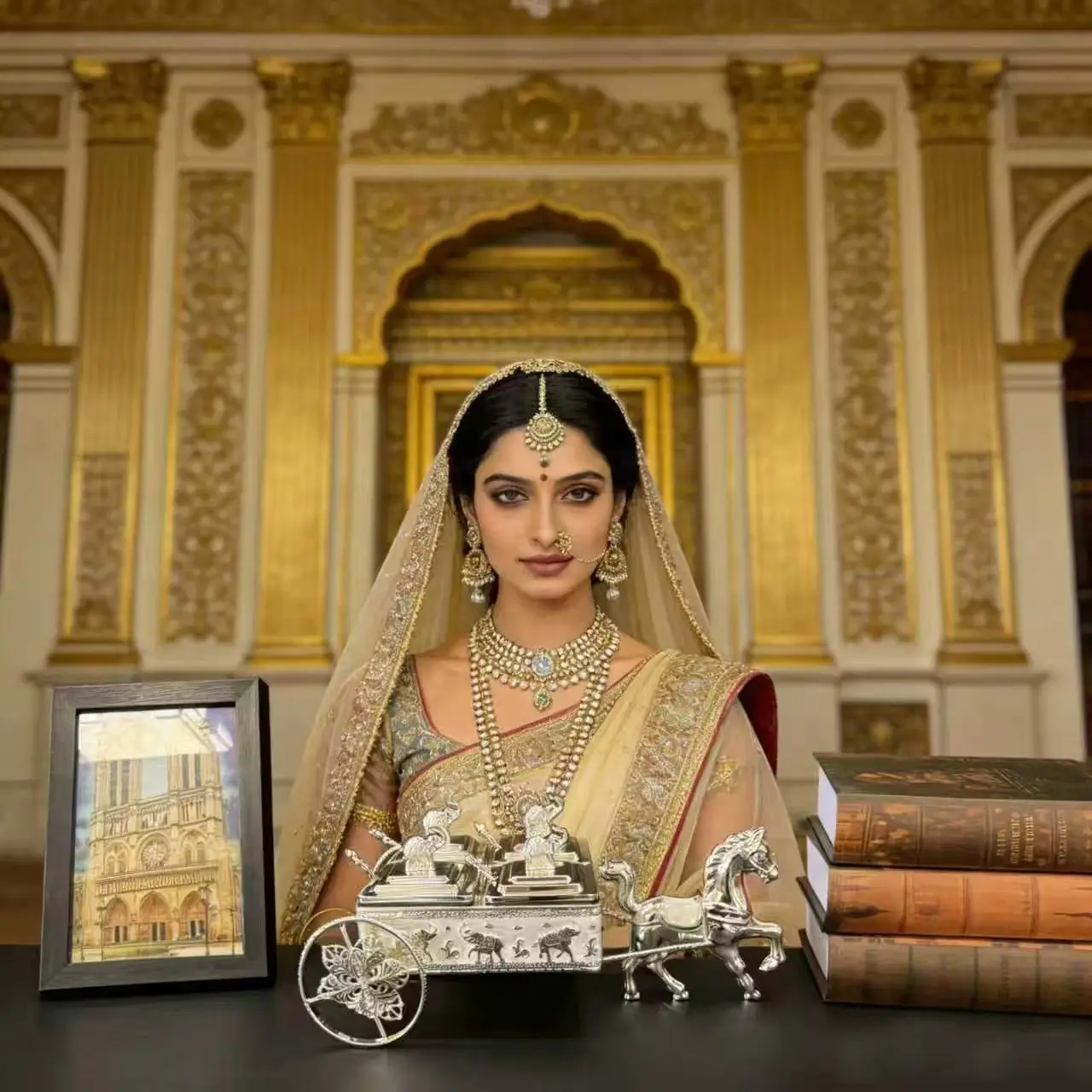 Luxury silver-plated enamel Mukhvas Chariot