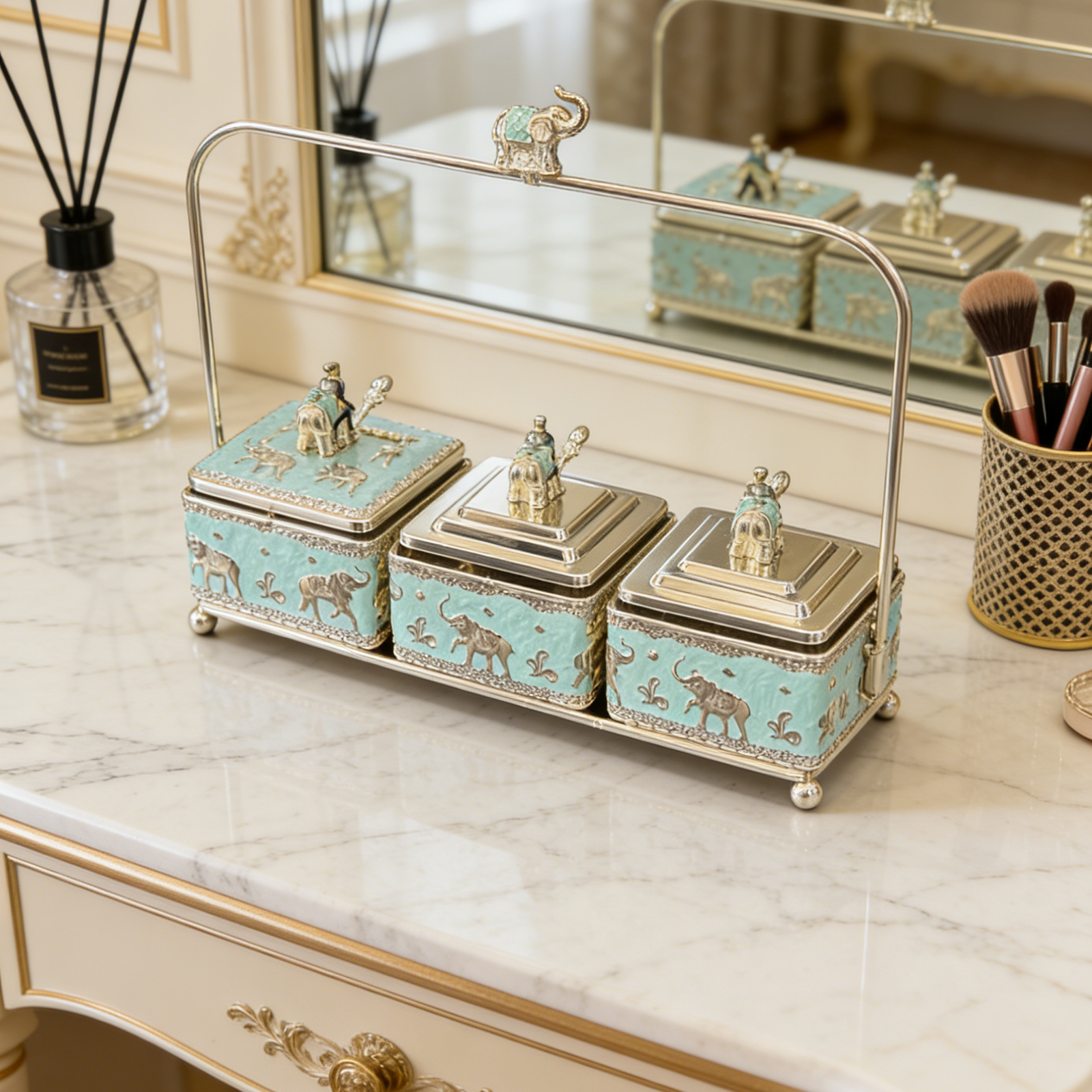 Luxury silver-plated enamel Mukhvas Chariot